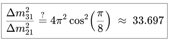 Falsifier B — The splitting ratio is off: If the measured ratio of mass-squared gaps ever settles away from this number,
